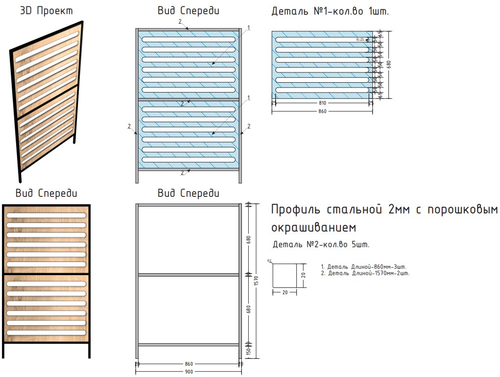 Выполнена из стального профиля черного цвета с порошковым покрытием, которое обеспечивает устойчивость к появлению коррозии и перепадам температуры.