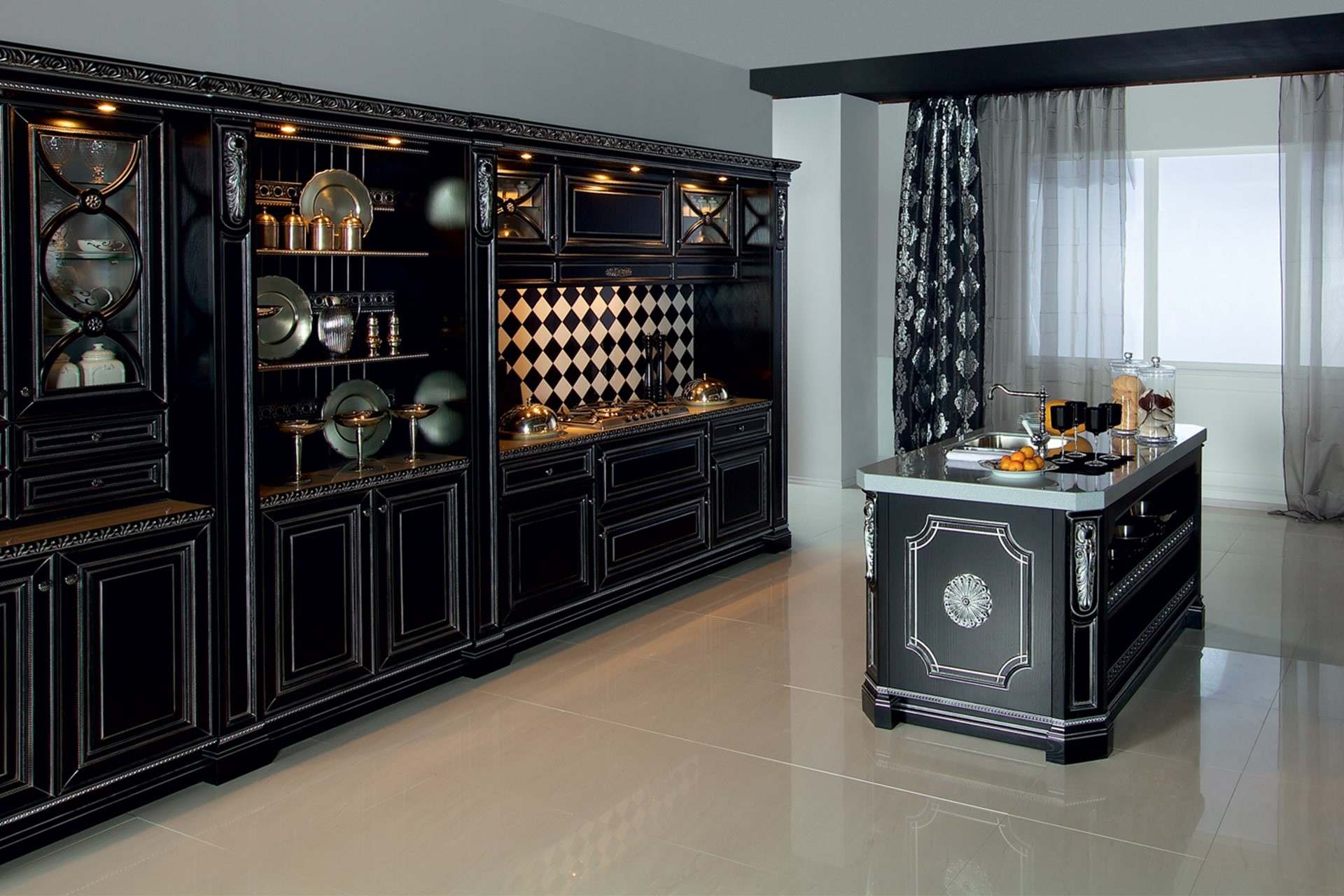 Темные кухни — эффектное решение для больших помещений. Глубокие насыщенные цвета фасадов становятся выразительным акцентом, основой дизайна гарнитура и интерьера кухни в целом. Купить черную кухню можно в Компании «Мария». Мы предложим выверенные сочетания цветов, красивые материалы, удобное наполнение. Компания «Мария» проектирует и изготавливает кухни на заказ с учетом ваших требований к дизайну, комплектации, материалам, размерам и цвету мебели.