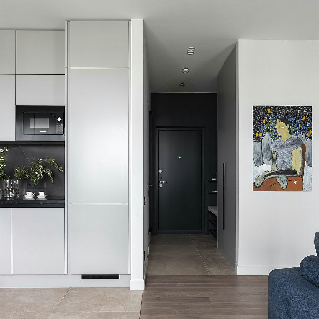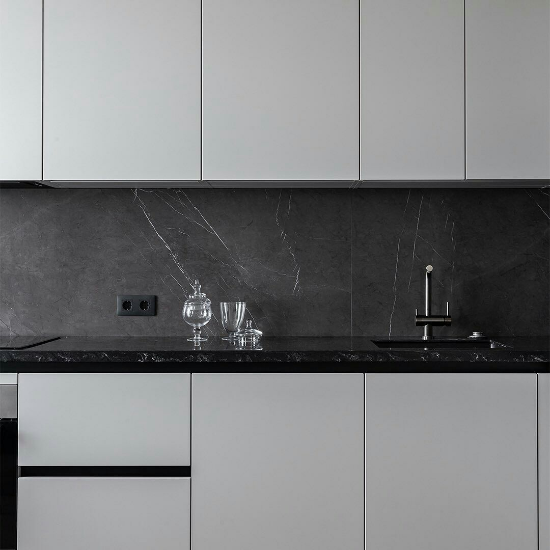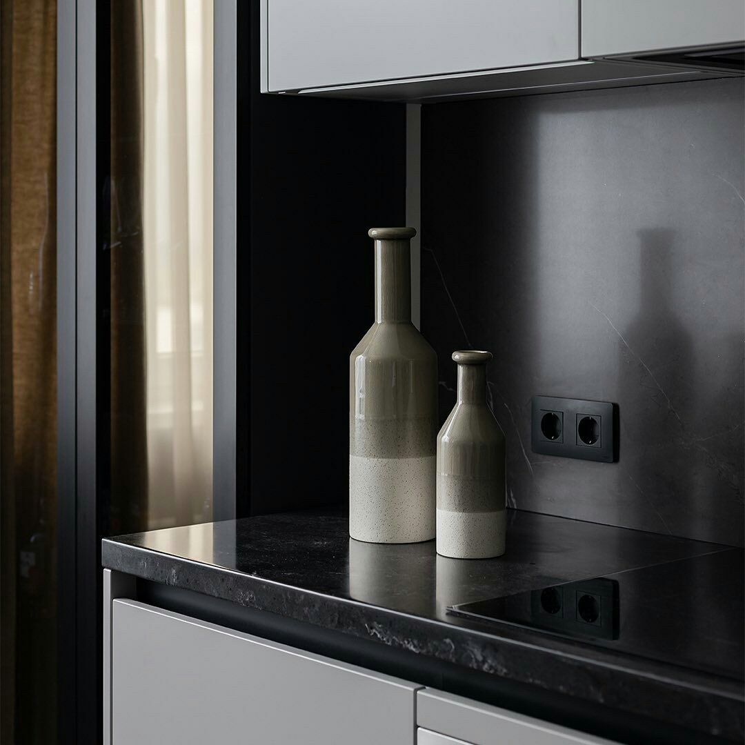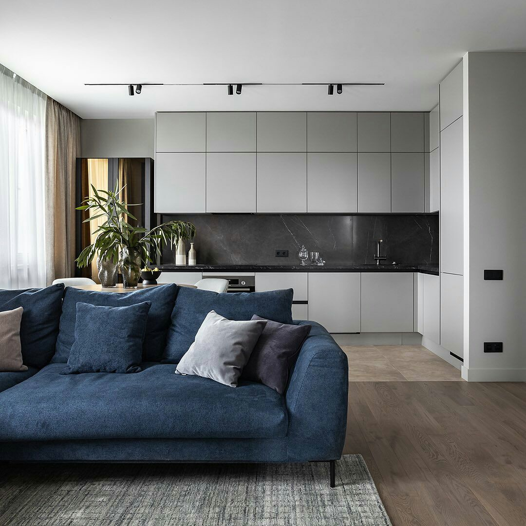Угловая серая кухня: минимализм и скрытое хранение